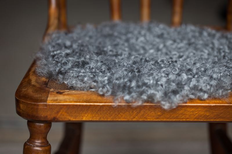 En elegant, grå,sydd värmande mjuk dyna med stoppning och halkskydd (glidskydd) på baksidan (alternativ finns även med spaltläder +50kr-fråga gärna vad som finns klart). Dynor som passar lika bra till matsalsmöblemanget som till köksstolarna. Färgen på våra lammskinn är mer enhtligt grå samt med mer glans. En mjuk dyna att sitta på. Större (ca 35-36cm) och med en dyna som är 2 cm tjock. Lammens pälshår är mjukare än fårens. Öländskt hantverk.